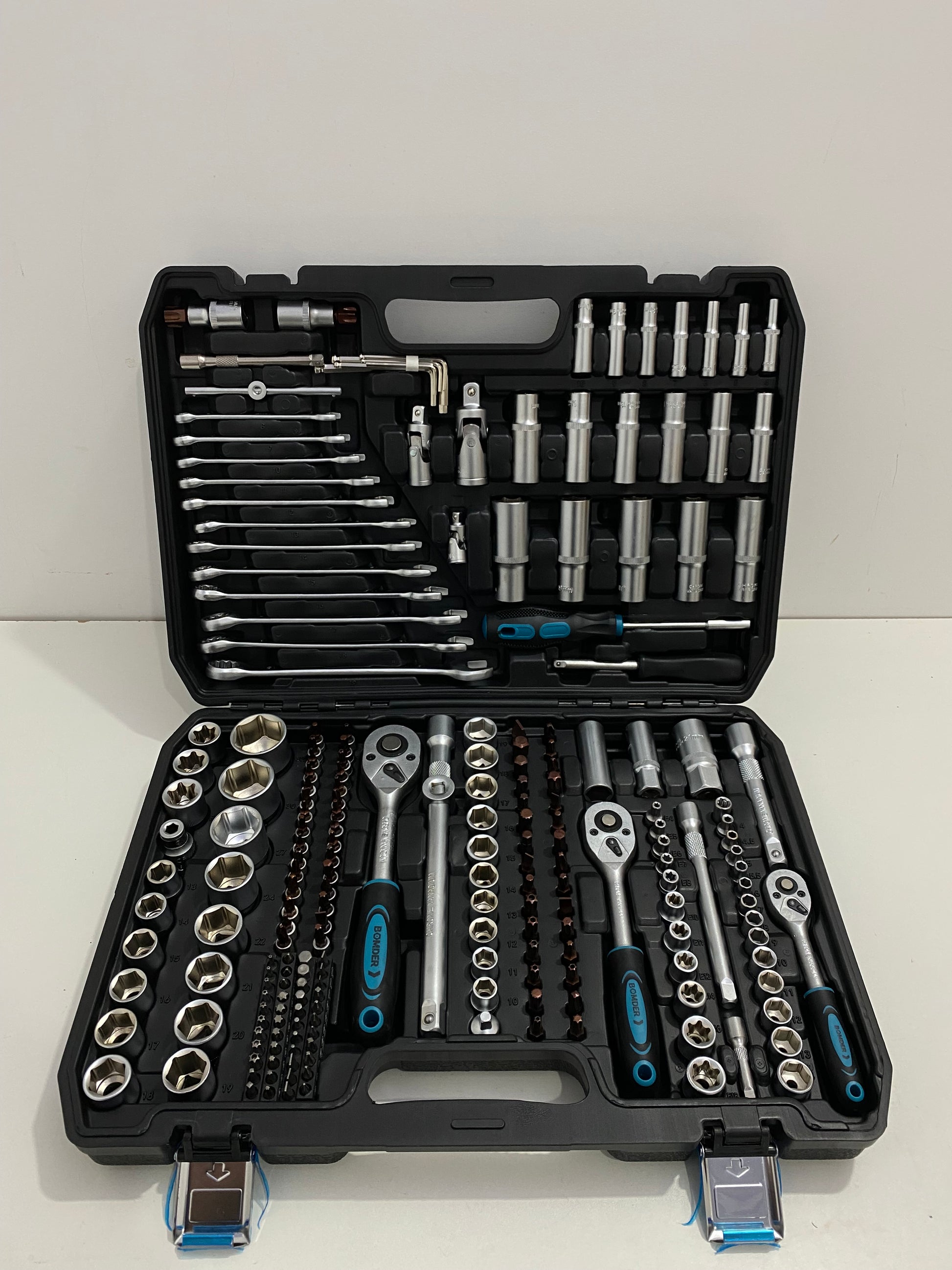 - Todo en uno: llaves combinadas, vasos, puntas, extensiones y más.