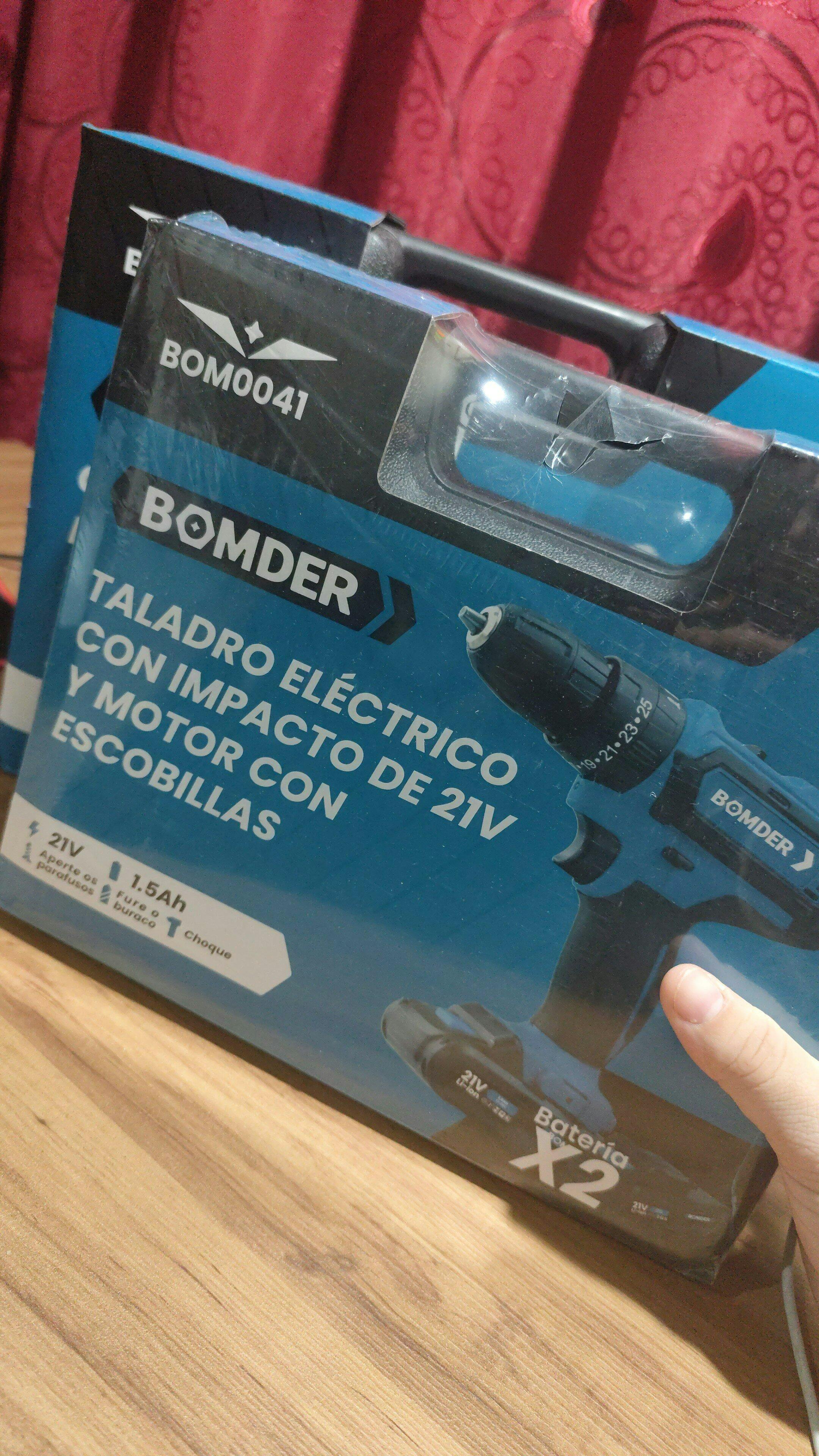 Taladro BOMDER 21V, 2 baterías 21 voltios, cargador, estuche rígido y set de brocas + puntas.